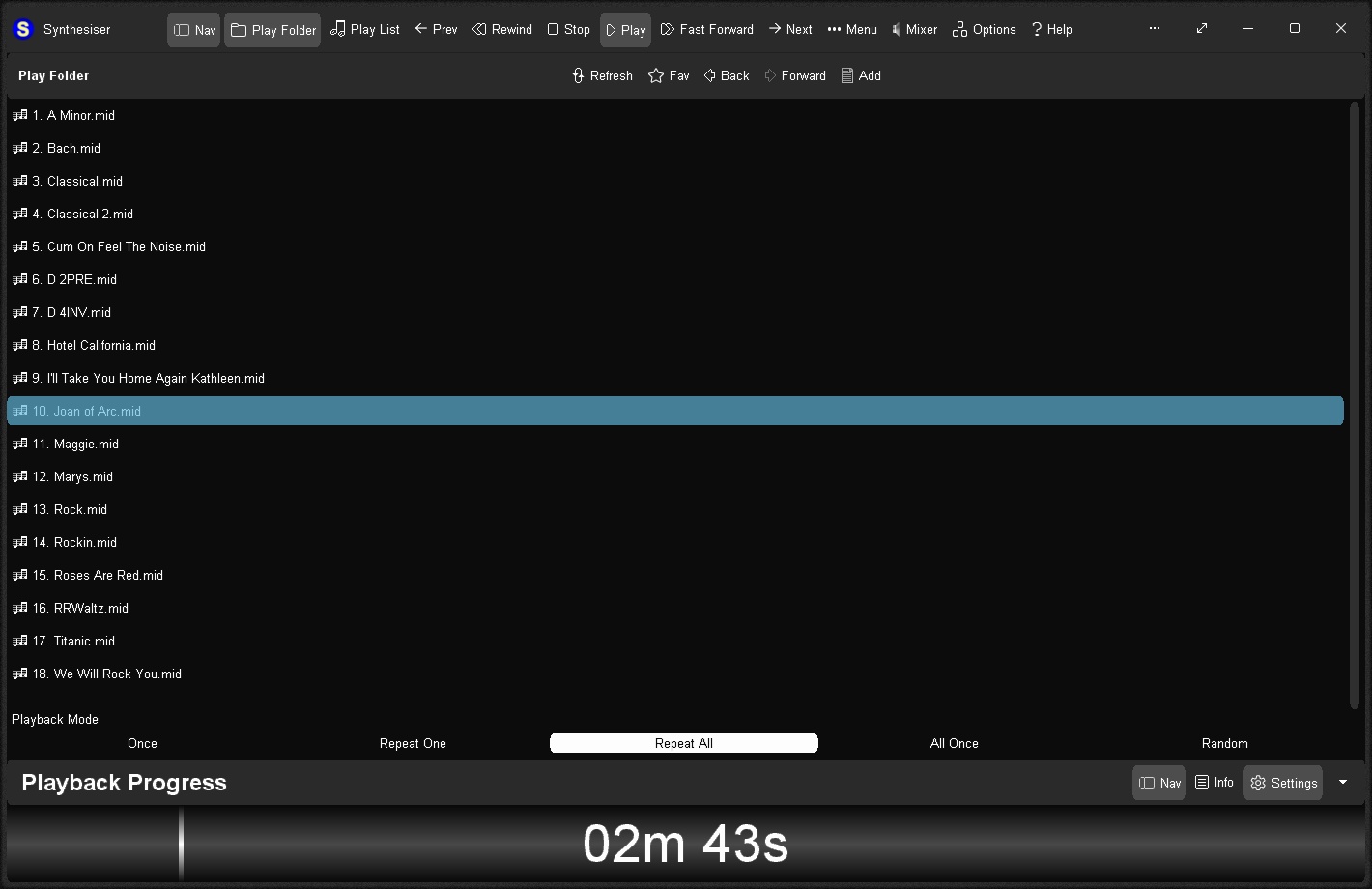 - Intro Mode: Play first 2s, 5s, 10s or 30s of midi