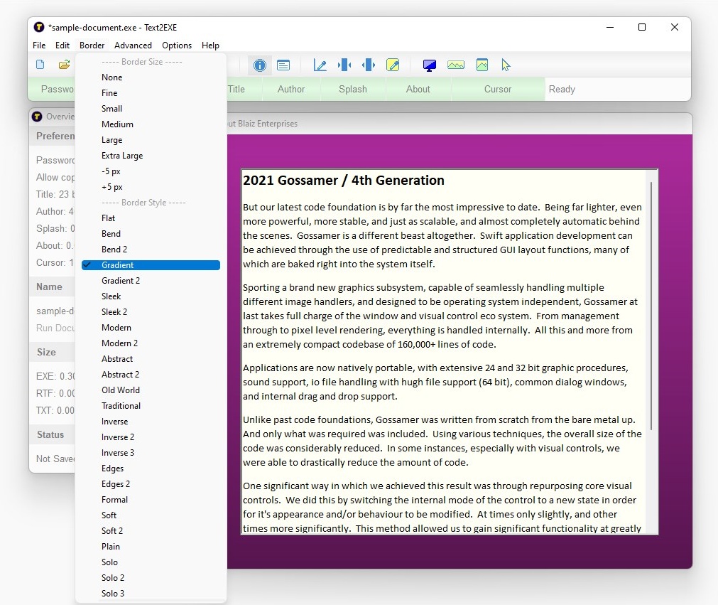 Create and customise a standalone document (exe) with ease